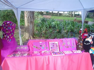 No domingo houve feira, mas apenas só com os mais teimosos, ou os mais loucos.... dependendo da perspectiva!!! Ora chovia, ora fazia sol, ora vinham umas rabanadas de vento que levavam tudo pelo ar. A montagem da banca foi um teste à paciência que não tenho.... devo ter montadao para aí umas três vezes cada placar de colares, mais os aneis e brincos que caíram várias vezes ao chão que estava molhado como é normal... o que quase me deixou à beira de um ataque de nervos!!! O que me valeu foi estar tão constipada que nem tinha forças para me irritar muito. Depois durante o dia tivemos direito a sessão de voou de toldos, toldos partidos.... uma animação constante!!!